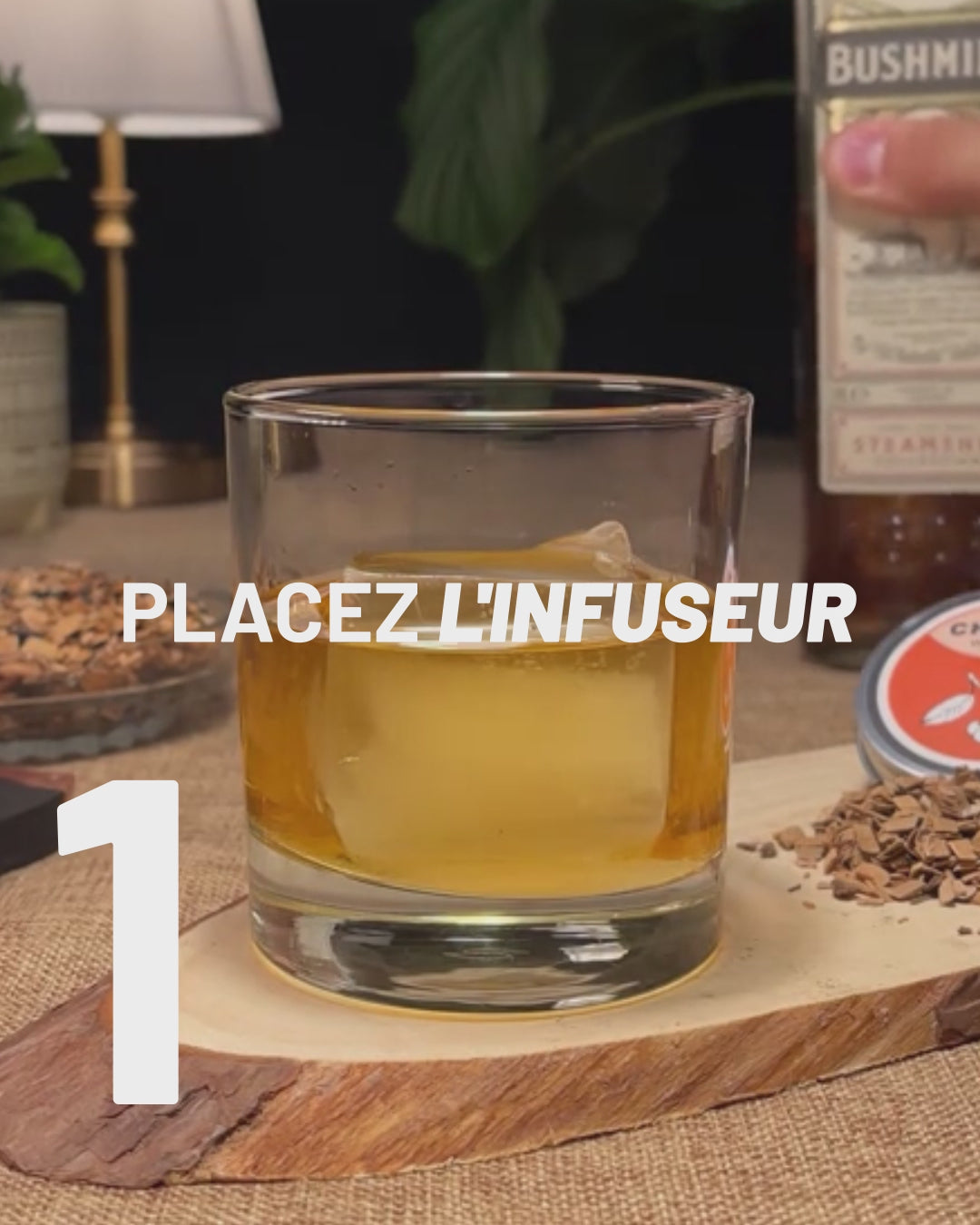 4 - Laissez infuser – Attendez quelques instants pour laisser la fumée rehausser le caractère de la boisson, puis retirez l'infuseur.